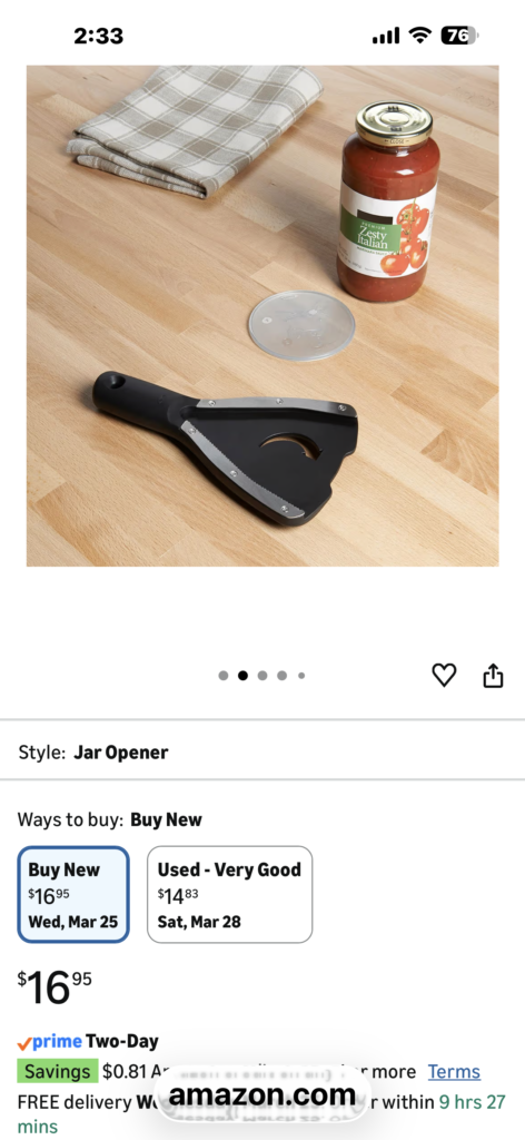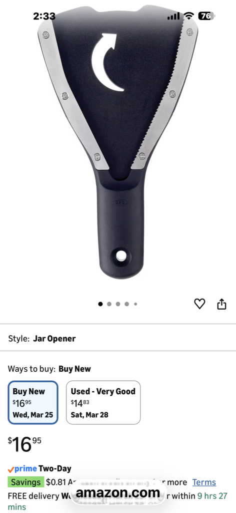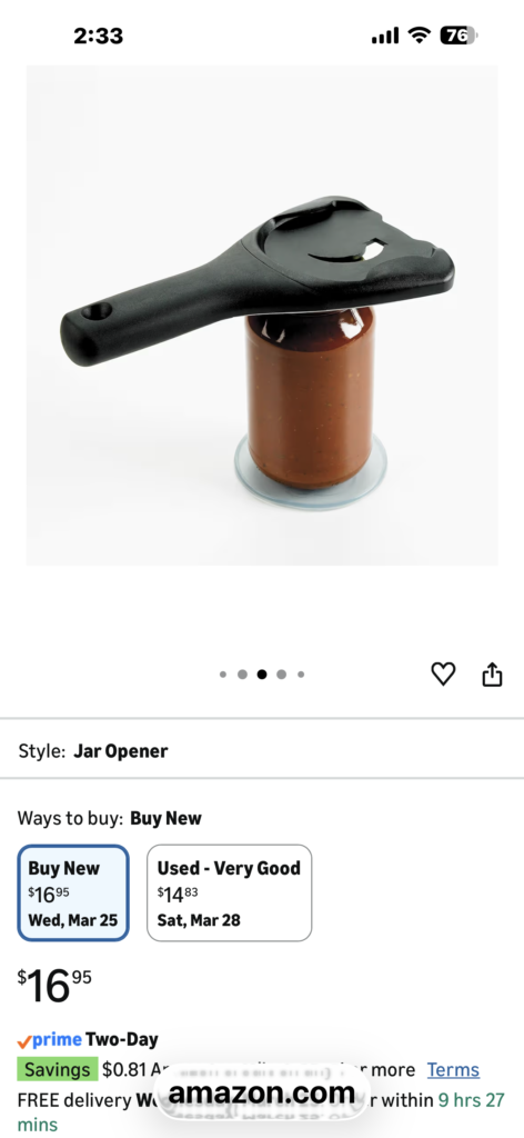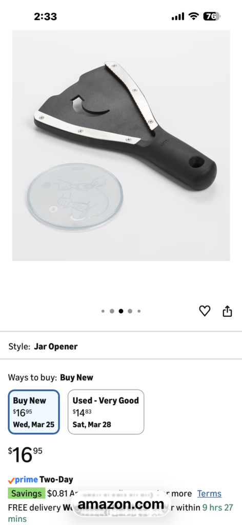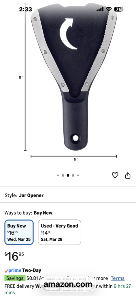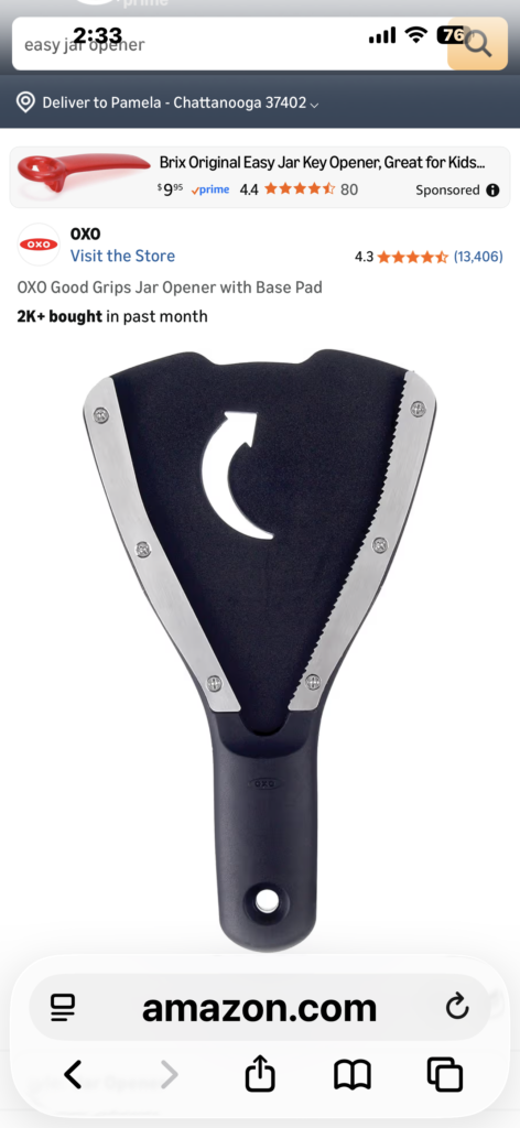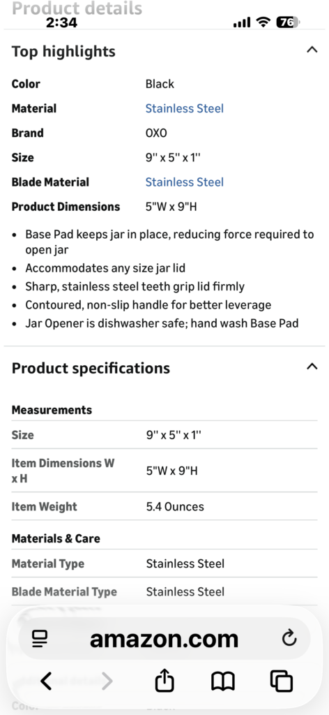 This jar opener with base pad is extremely easy to use. The base pad keeps the jar in place, so it just takes hardly any strength/leverage at all to open the jar. It can be used on any size lid, which makes it super convenient. I also appreciate the non-slip handle that really makes it easier for me to hold onto. I highly recommend this product!